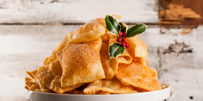 - Polvilhe a mesa com farinha e deite de novo a massa em cima da mesa. Retire pequenas porções de massa e estenda-a com o rolo, até ficar com uma espessura quase transparente. Corte a massa em quadrados (ou outro corte a gosto) e leve-a a fritar em óleo abundante, previamente aquecido, até ficar douradinha.
