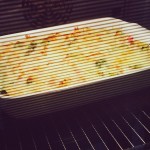 6. Retire do lume e deite sobre a mistura do peixe. Espalhe por cima a mozzarela ralada e leve ao forno, que já deve estar a 180º, até ficar douradinho. Retire e sirva quente.