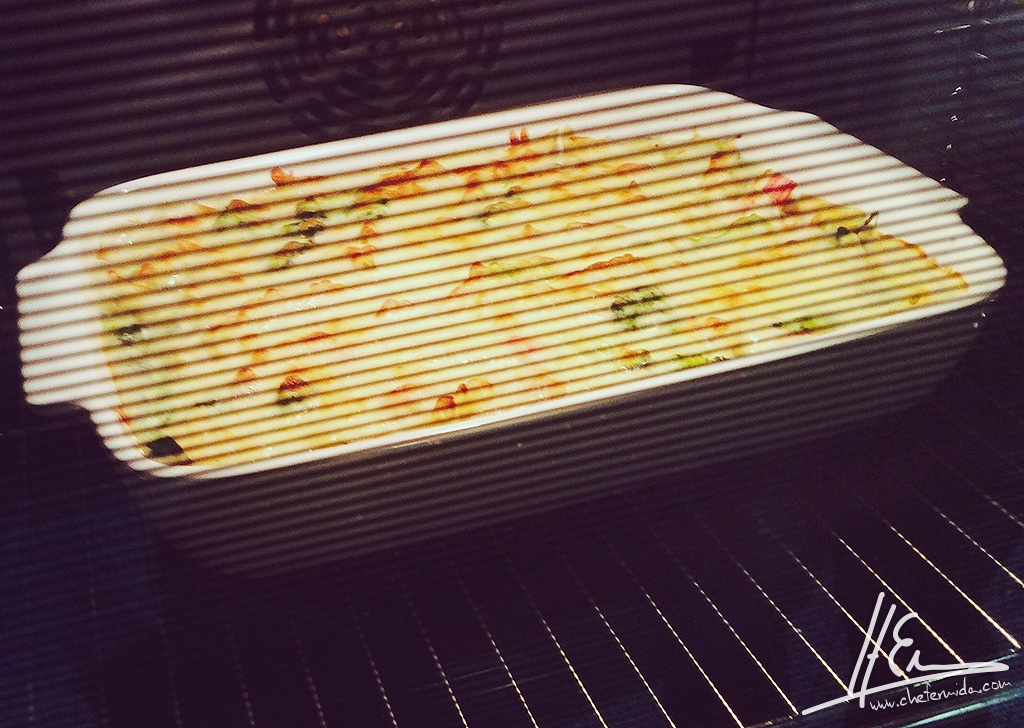 6. Retire do lume e deite sobre a mistura do peixe. Espalhe por cima a mozzarela ralada e leve ao forno, que já deve estar a 180º, até ficar douradinho. Retire e sirva quente.